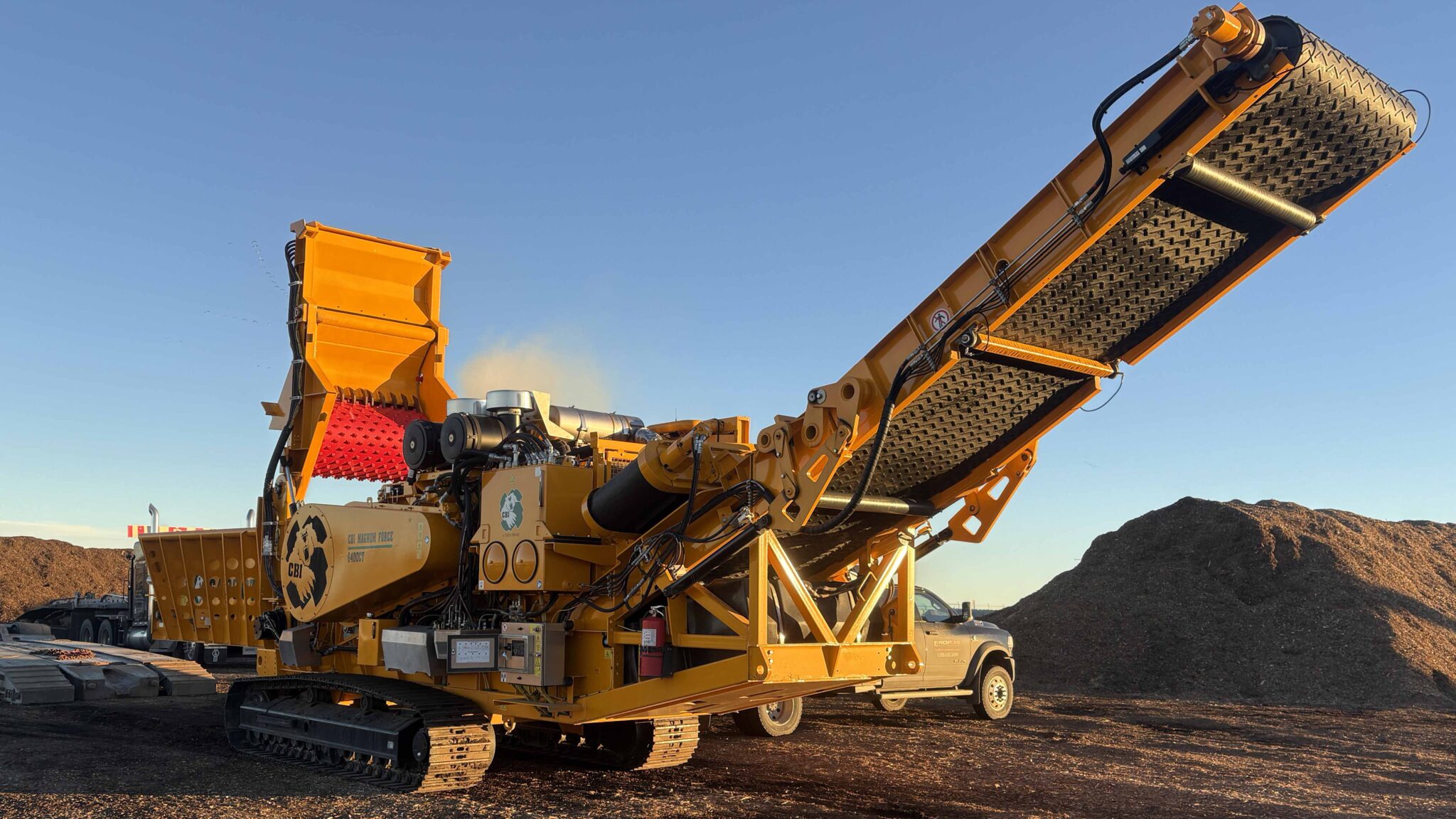 The CBI 6400CT portable downswing horizontal wood grinder is a very versatile grinder because of its four interchangeable rotors. As part of CBI’s powerful fleet of horizontal wood grinders, the CBI Magnum Force 6400CT provides the flexibility to process an exceptionally wide variety of materials and generate the end products your clients demand—all with a single machine.
